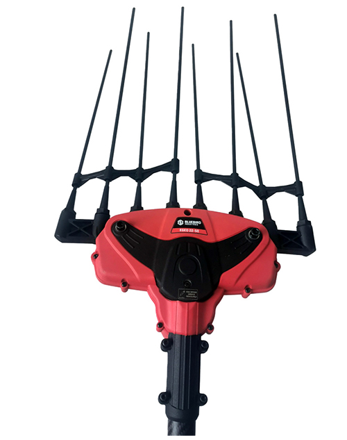 Το νέο και πρωτοποριακό ραβδιστικό ελιάς από την Blue Bird Ιταλίας διαθέτει ισχυρό μοτέρ και προσφέρει δύο ταχύτητες: μία κατάλληλη για τη συλλογή βρώσιμων ελιών και μία για ελιές που προορίζονται για παραγωγή λαδιού. Είναι εξοπλισμένο με 8 βιδωτά ραβδάκια από ανθρακονήματα τύπου flex, τα οποία διακρίνονται για την εξαιρετική τους αντοχή. Αυτά δεν προκαλούν ζημιές στο δέντρο και διευκολύνουν την αποδοτική συγκομιδή του καρπού.
