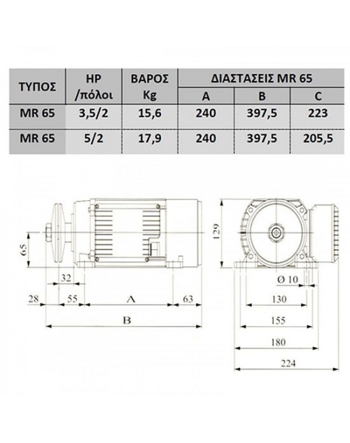 Ηλεκτροκινητήρας ΠΛΑΚΕ SOGA Ιταλίας τριφασικός 5 hp 2800 στροφές MEC MR65